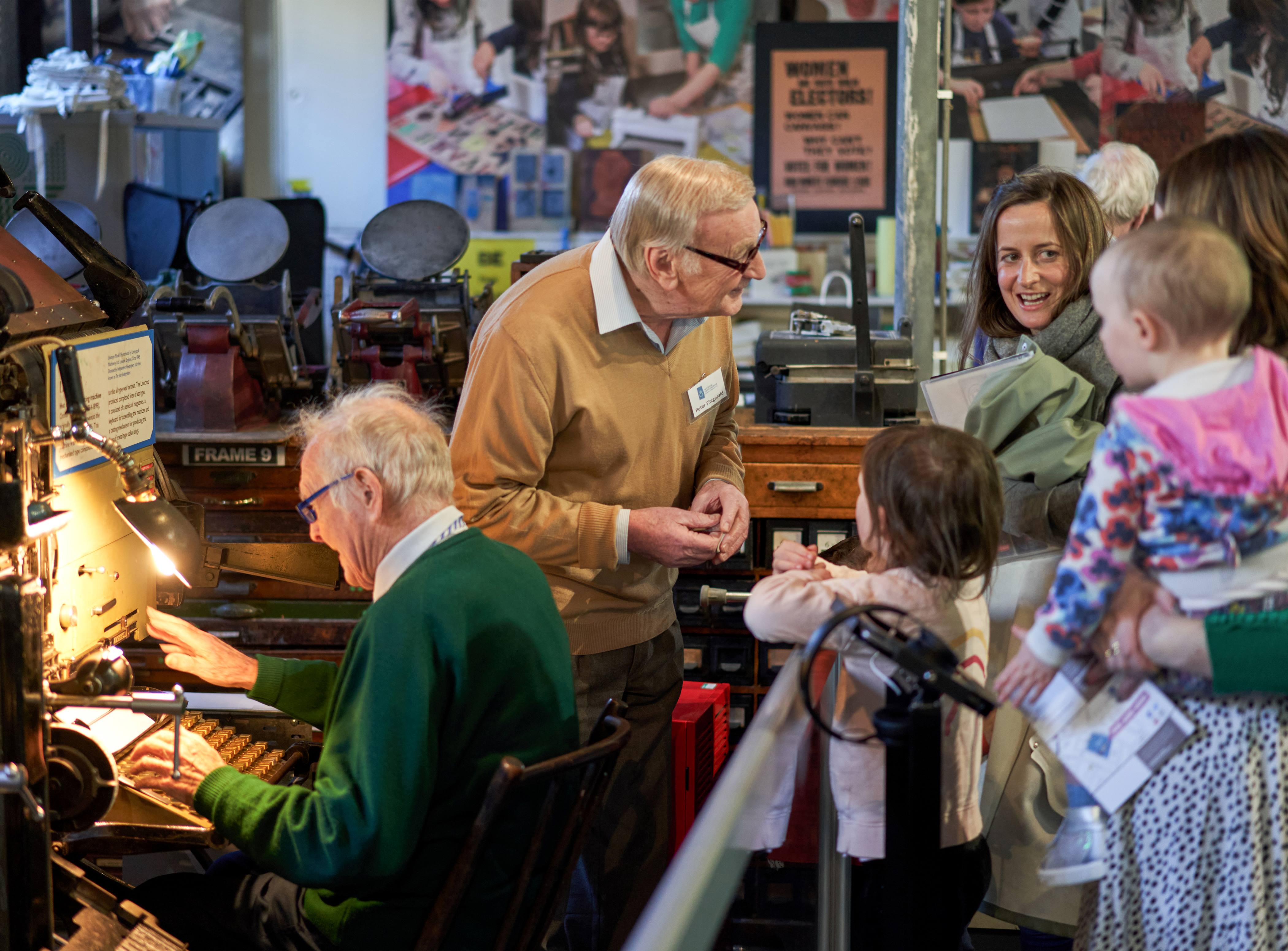 Experience the Museum come to life as a volunteer panel of retired printers demonstrate our collection in action. From the Linotype composing machine to the Wharfdale printing press to the Shaw Pen Ruling machine, witness the incredibly complex technologies that were used for centuries before our modern digital printers.