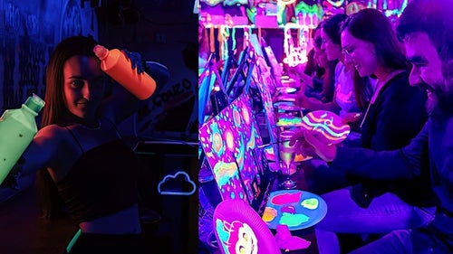 Create a painting under UV Lights and do something very different with music and prizes. Part of the Swift Fan Festival collection.
