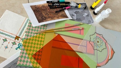 Taking inspiration from the artworks of a Diaa Lagan in the ‘Routes and Realms – al-Masālik wa al-Mamālik’ exhibition, this technical workshop focuses on the practical, hands-on aspects of painting, including the use of acrylics, layering, applying collage and print techniques, and experimenting different mediums. Join us for this two-day course and create your own response to the Medieval manuscript on display. Suitable for intermediate & advanced artists but beginners with a high interest in painting are welcome.