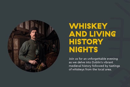Join our Living History Tour and wander through Dublin’s vibrant medieval past, brought to life by our incredible guides. Then, toast to the season with a guided whiskey tasting hosted by Whiskey Island in our stunning 150-year-old medieval building — the perfect winter warmer!